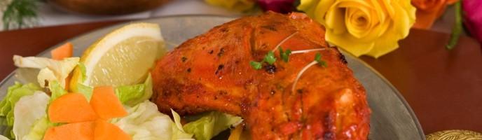 | Two quarters of succulent chicken immersed overnight in light tandoori masala marinade, roasted in clay oven served with sizzling onions. | |||