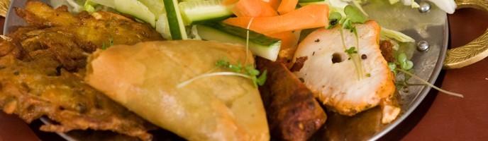 | Selection of vegetarian Samosa, Onion Bhaji and yak roll. | |||